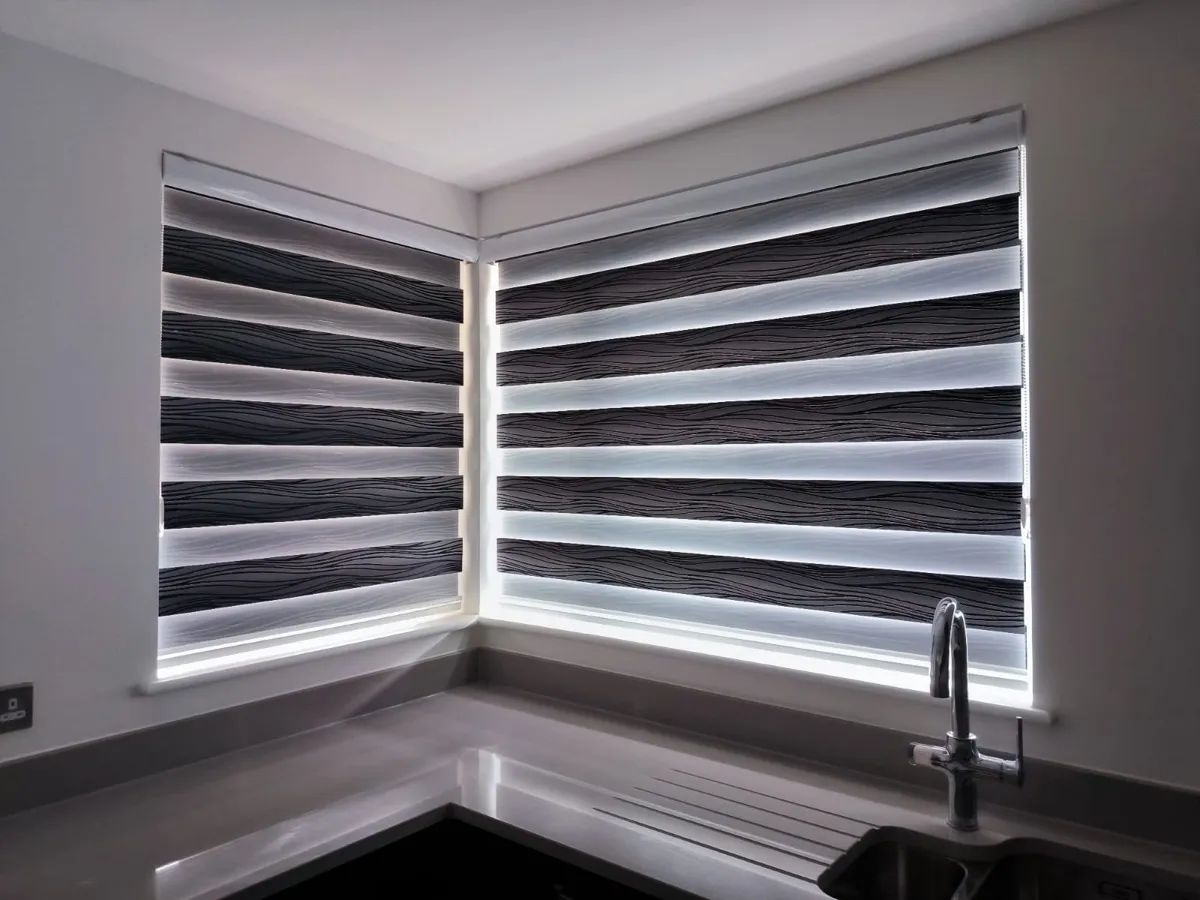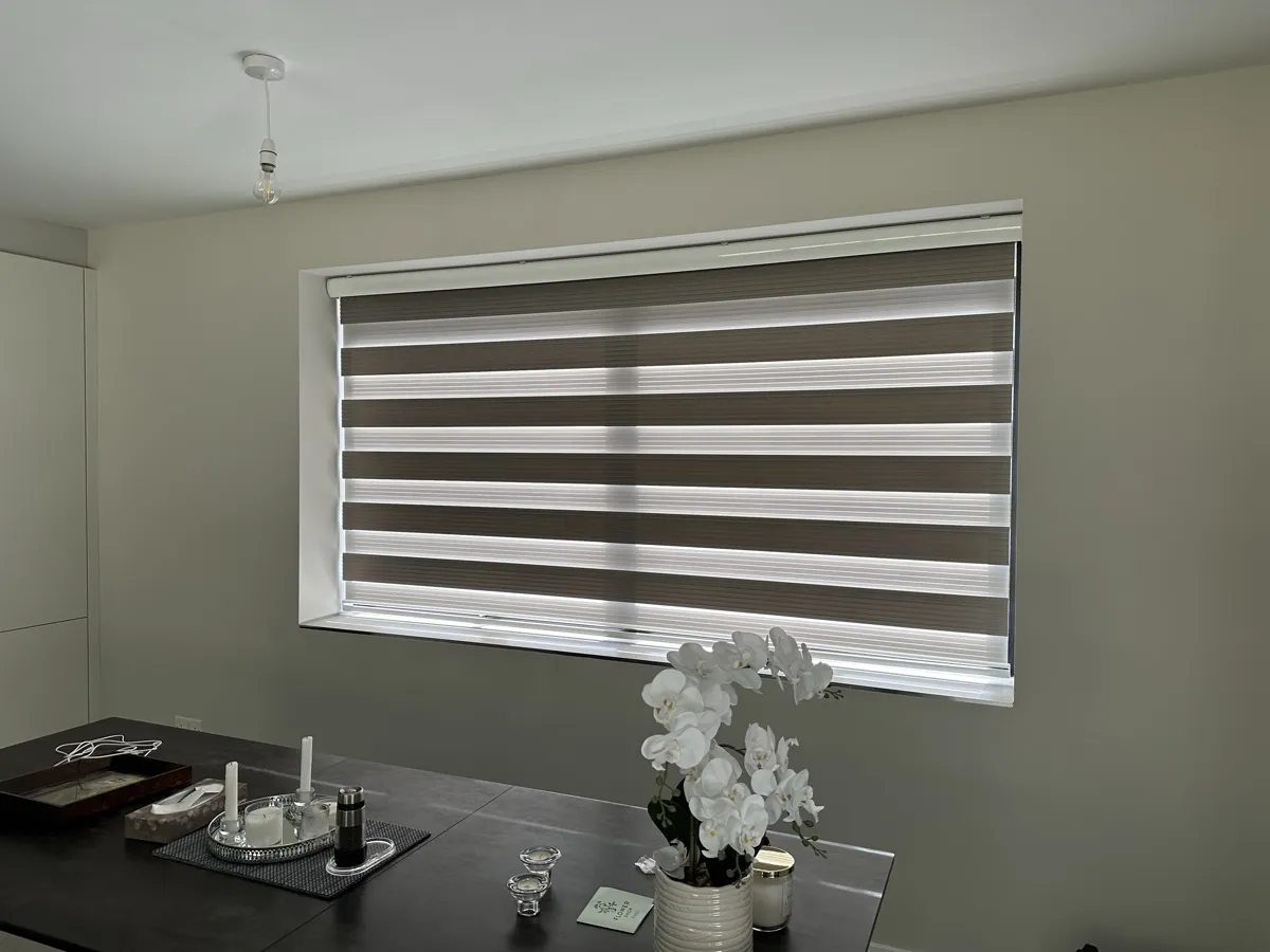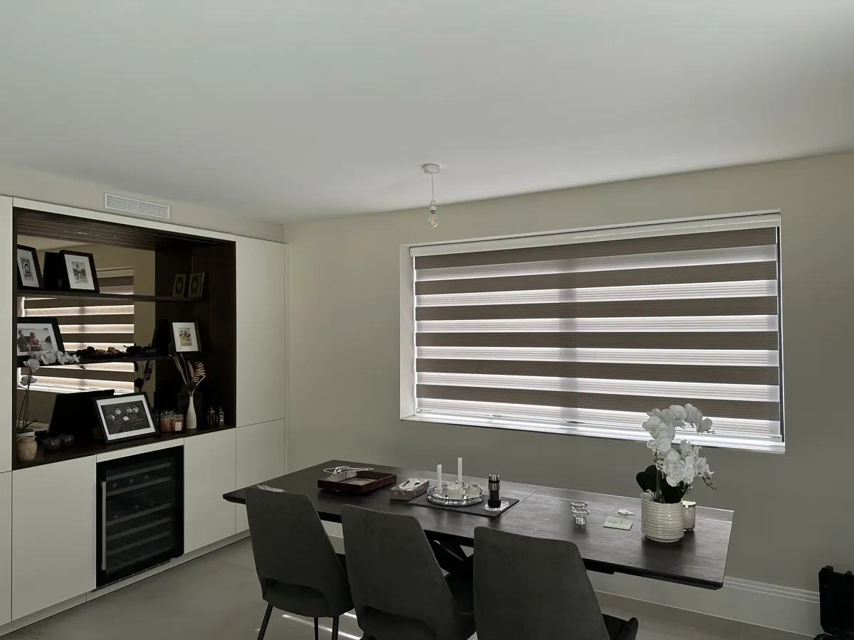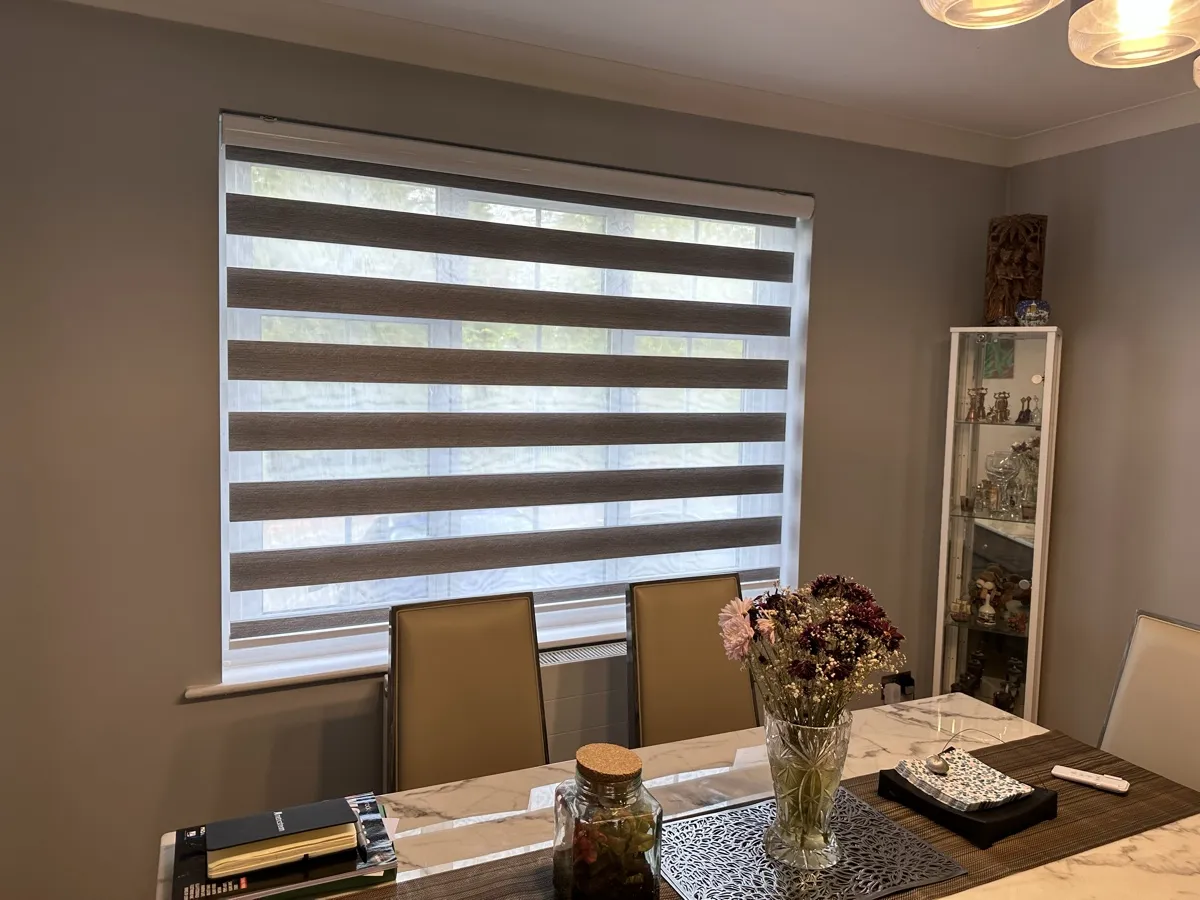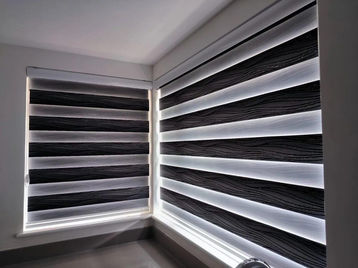 Day and Night (Zebra) Blinds offer a perfect blend of style, functionality, and light control. Featuring alternating sheer and opaque fabric layers, these blinds allow you to adjust light levels with ease while maintaining privacy. Their modern design complements contemporary interiors, making them ideal for living rooms, bedrooms, and offices. Easy to operate and available in various colors and textures, Zebra Blinds bring a sleek, sophisticated look to any space.