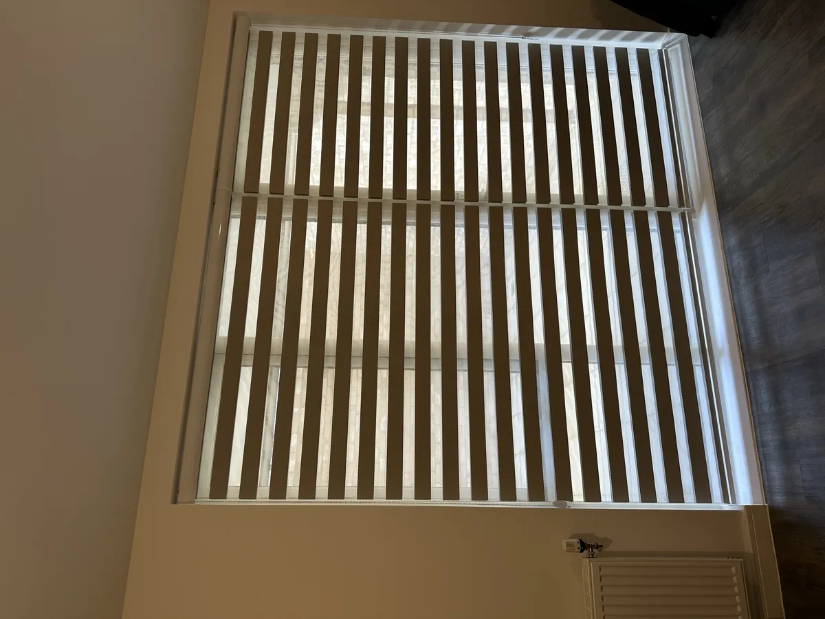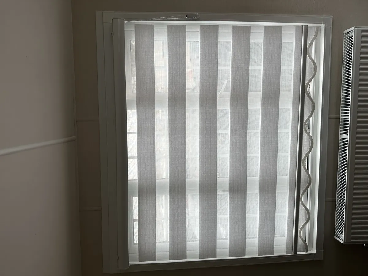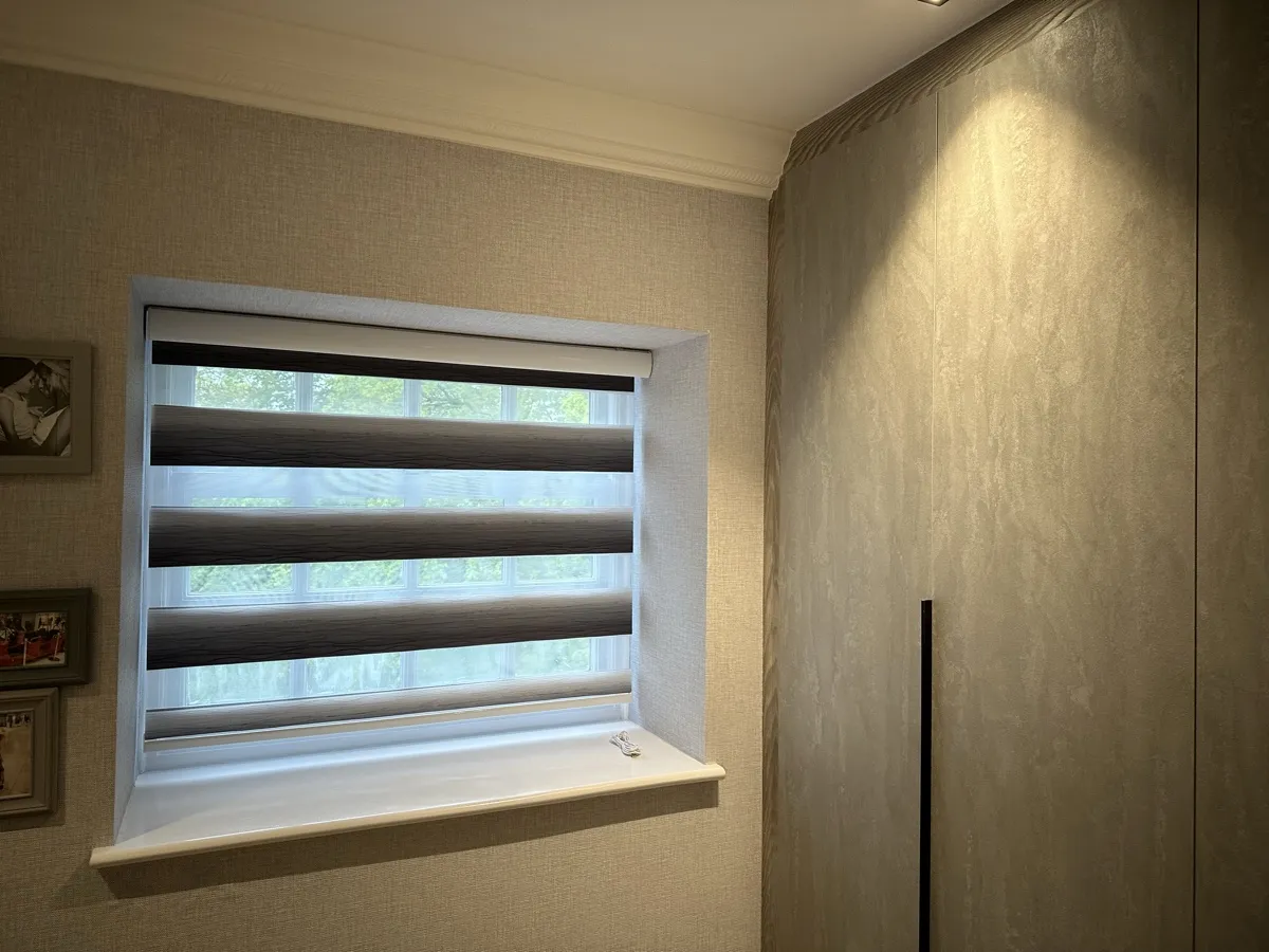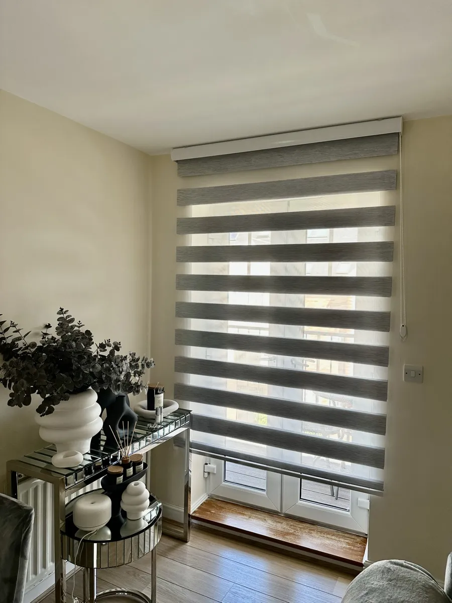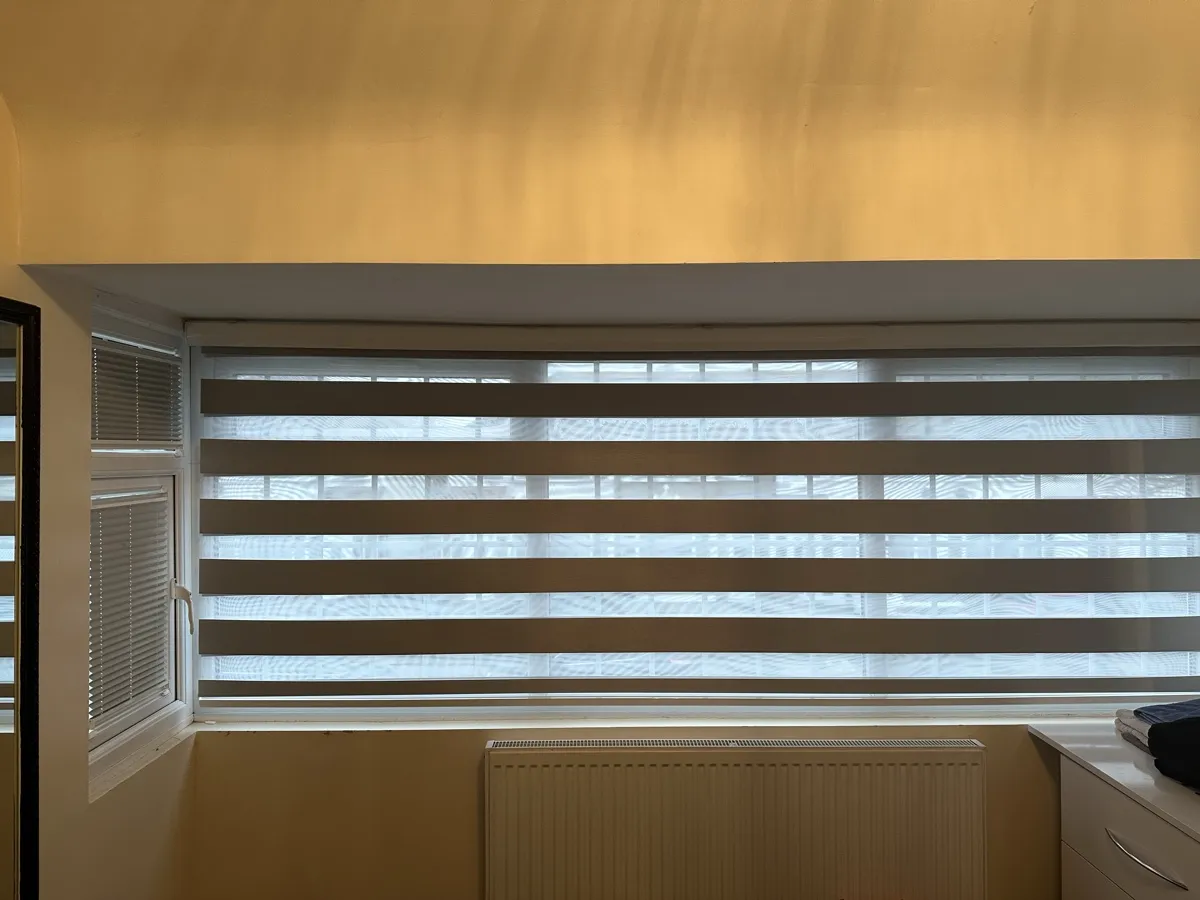 Day and Night (Zebra) Blinds offer a perfect blend of style, functionality, and light control. Featuring alternating sheer and opaque fabric layers, these blinds allow you to adjust light levels with ease while maintaining privacy. Their modern design complements contemporary interiors, making them ideal for living rooms, bedrooms, and offices. Easy to operate and available in various colors and textures, Zebra Blinds bring a sleek, sophisticated look to any space.