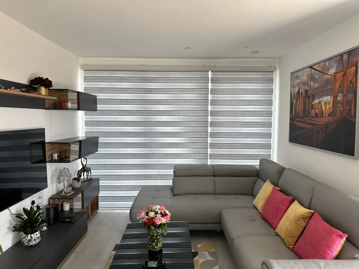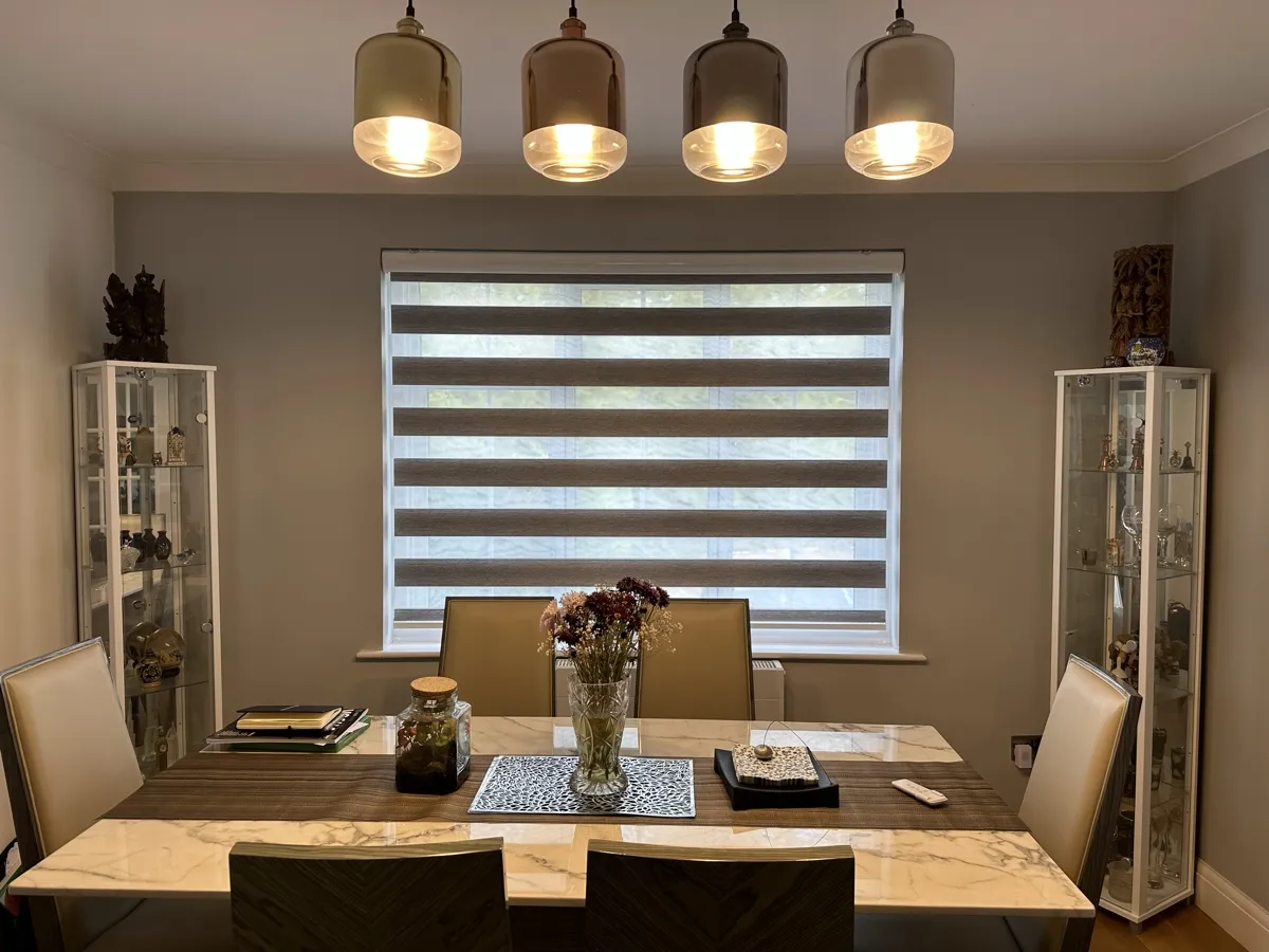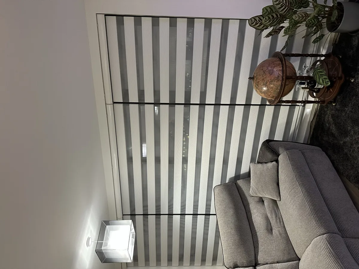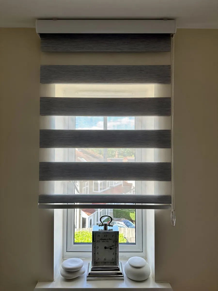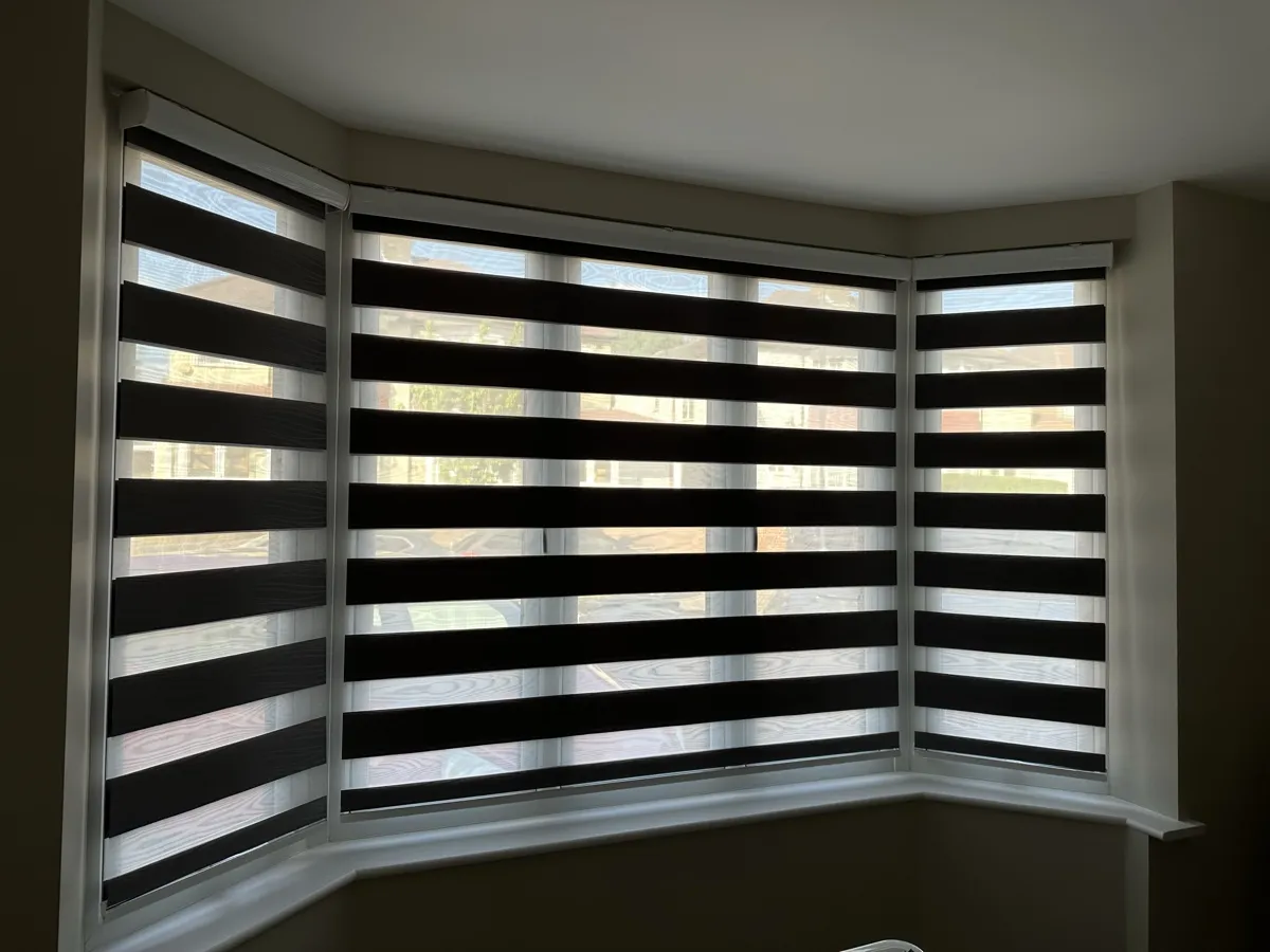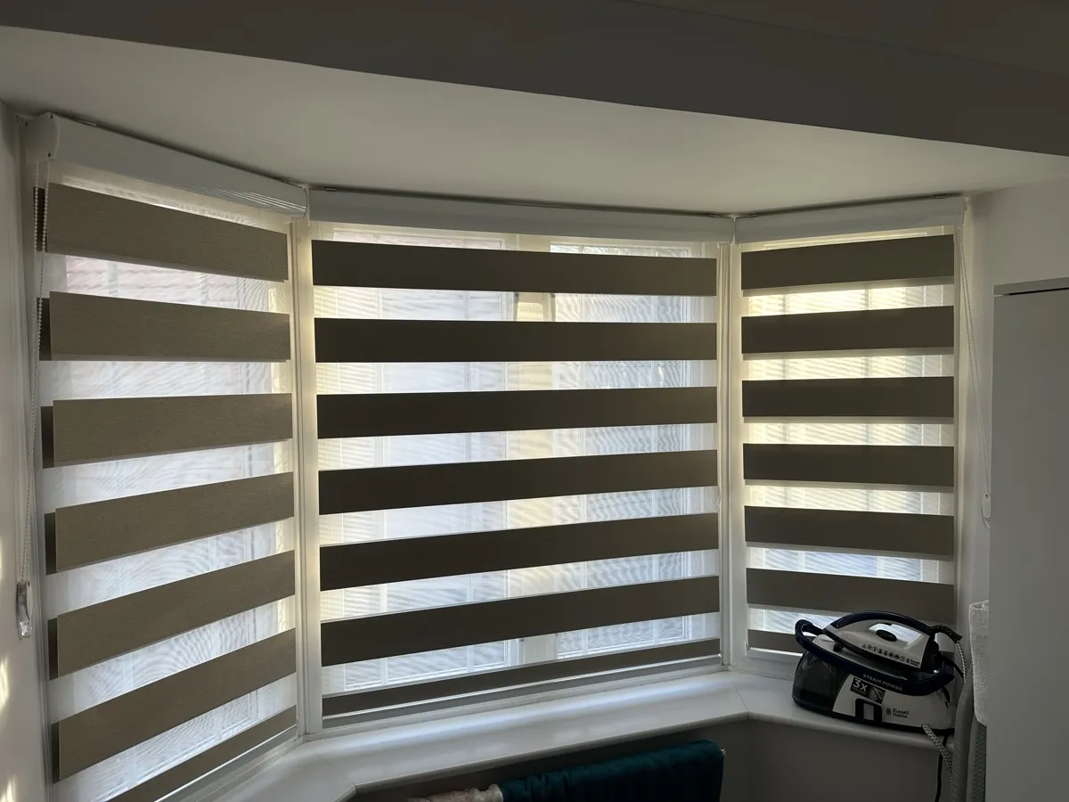 Day and Night (Zebra) Blinds offer a perfect blend of style, functionality, and light control. Featuring alternating sheer and opaque fabric layers, these blinds allow you to adjust light levels with ease while maintaining privacy. Their modern design complements contemporary interiors, making them ideal for living rooms, bedrooms, and offices. Easy to operate and available in various colors and textures, Zebra Blinds bring a sleek, sophisticated look to any space.