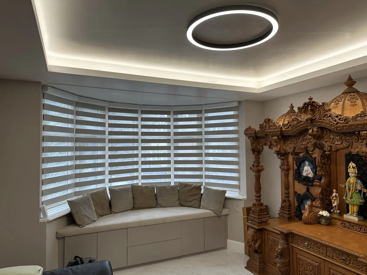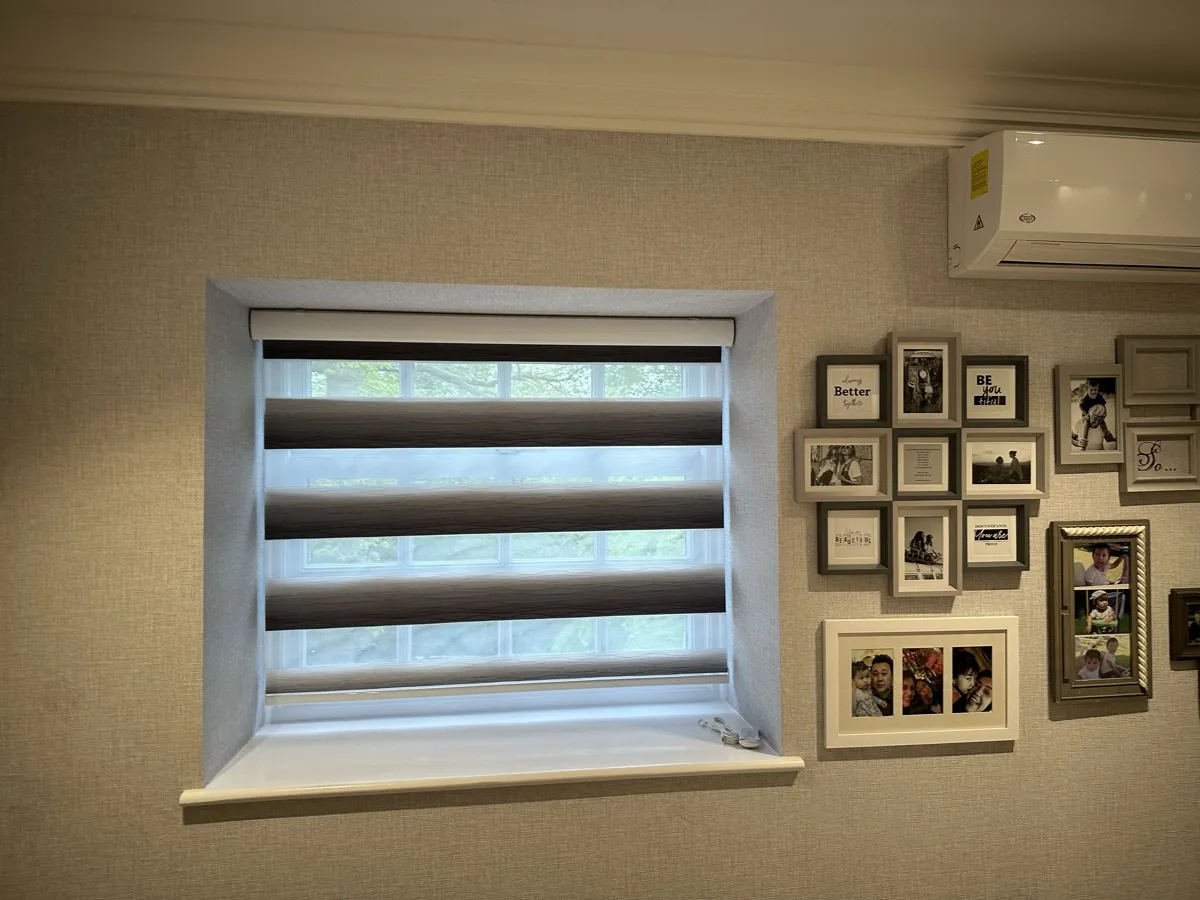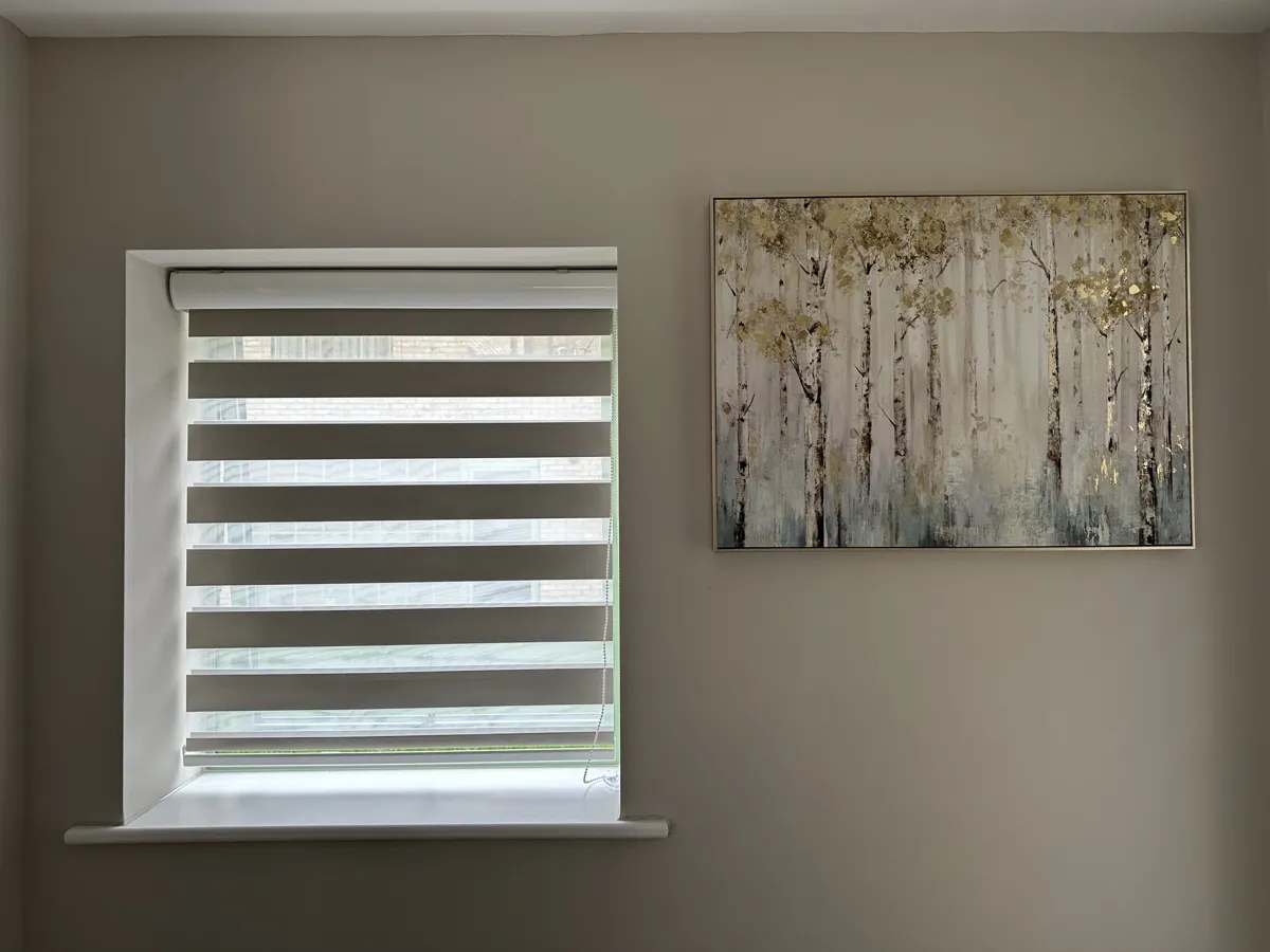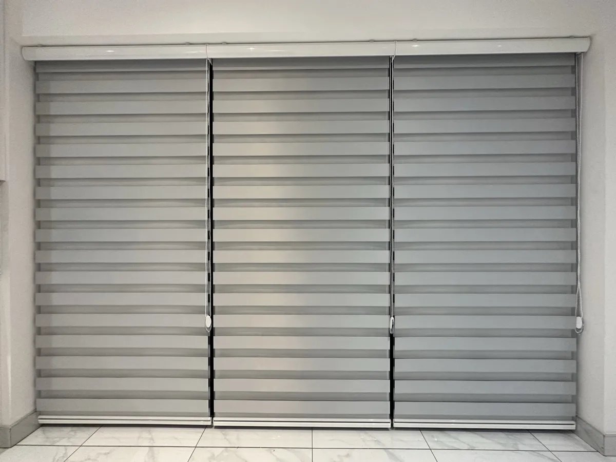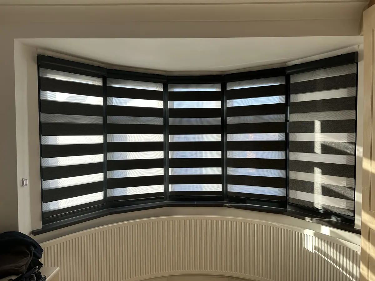 Day and Night (Zebra) Blinds offer a perfect blend of style, functionality, and light control. Featuring alternating sheer and opaque fabric layers, these blinds allow you to adjust light levels with ease while maintaining privacy. Their modern design complements contemporary interiors, making them ideal for living rooms, bedrooms, and offices. Easy to operate and available in various colors and textures, Zebra Blinds bring a sleek, sophisticated look to any space.