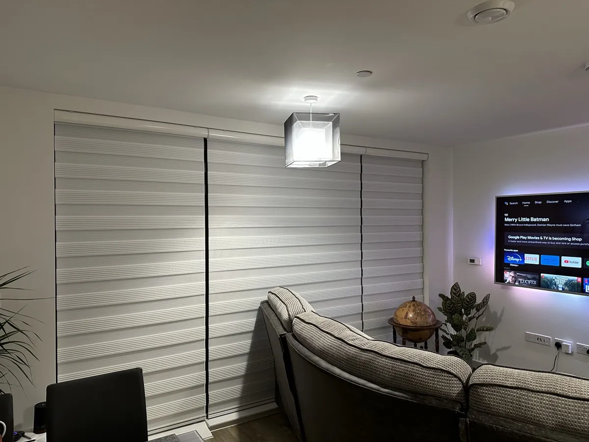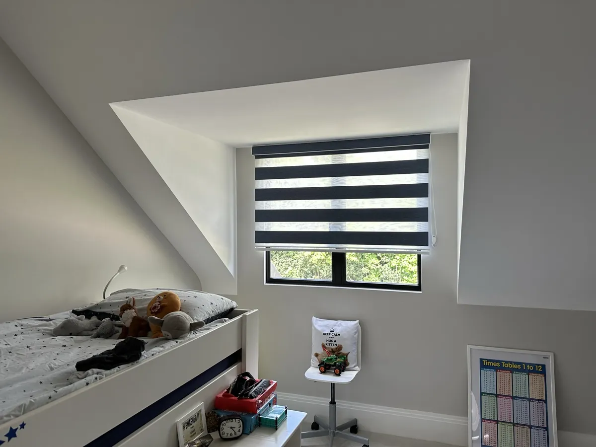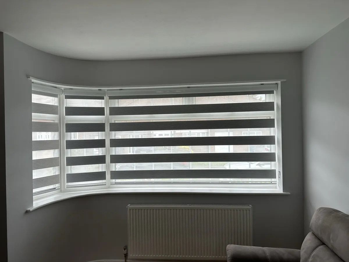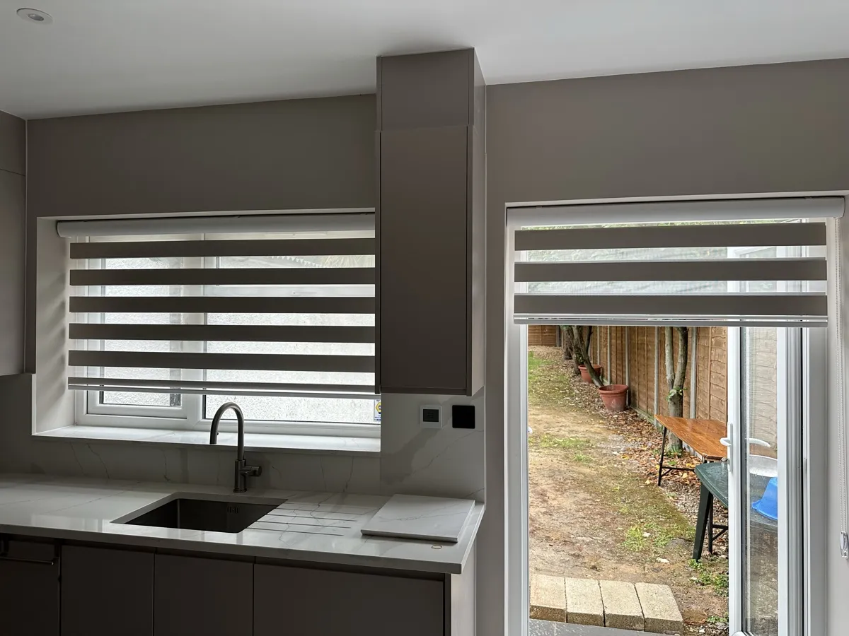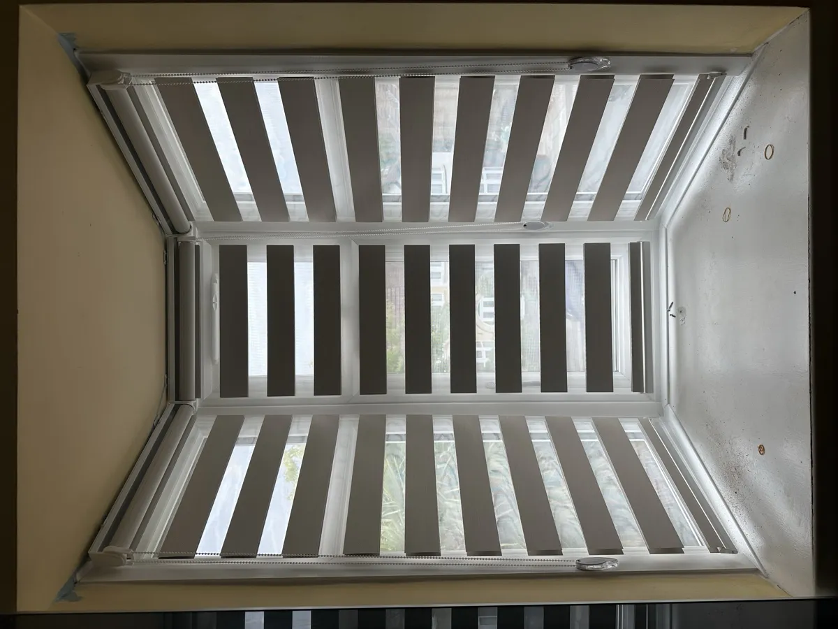 Day and Night (Zebra) Blinds offer a perfect blend of style, functionality, and light control. Featuring alternating sheer and opaque fabric layers, these blinds allow you to adjust light levels with ease while maintaining privacy. Their modern design complements contemporary interiors, making them ideal for living rooms, bedrooms, and offices. Easy to operate and available in various colors and textures, Zebra Blinds bring a sleek, sophisticated look to any space.